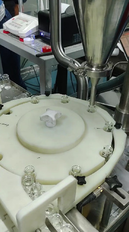 Fabricación de máquinas envasadora de polvo gradado farmacéutico tipo monobloque con control por medio de celda de carga, con una precisión de 0.001 g para diferentes tipos de productos en polvo o gránulo de administración por vía intravenosa o vía oral, con o sin fan filter con filtro HEPA del 99. 97% de eficiencia, cumplimiento de aire tipo A para producto farmacéutico, veterinario, cosmético con jeringas de alimentación de producto o bomba peristáltica, con sistema automático de colocación de tapas y sub tapas, diferentes tipos de envases de vidrio o plástico de forma redonda oblonga o cualquier otro tipo, el equipo cumple exigencias GMP y CFR 21 parte 11.Todos los materiales en contacto con el producto son materiales en acero inoxidable 316L o materiales inertes como nylon 6/6, silicona, teflón.