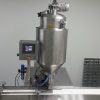 Fabricación de máquinas llenadoras de cremas pastosas o no pastosas tipo monobloque o lineales con sistema de alimentación por émbolo y cilindro con chaqueta de calentamiento elementos en contacto con el producto fabricados en acero inoxidable calidad 316L equipo totalmente sanitario cumple GMP y CFR 21 parte 11.