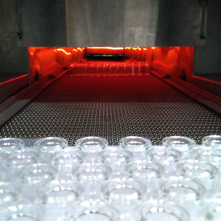 Túnel de despirogenización continúo fabricado en acero inoxidable calidad 304; se utiliza principalmente para el secado, esterilización y eliminación de pirógenos de las botellas de penicilina y antibióticos tubular, botellas de penicilina del molde y botellas de infusión, y el secado y esterilización de botellas de líquidos orales, cumple con los requisitos tecnológicos para el secado y la eliminación de pirógenos. El túnel cuenta con un mínimo 19 resistencias de 1.400 vatios fabricadas en material cuarzo con un recubrimiento en oro en la parte superior.El equipo cumple normatividad RETIE en la parte eléctrica y en software de validaciones cumple CFR 21 PARTE 11. El equipo dispone de flujo laminar con ventilador de alta eficiencia y filtros Hepa cada uno con su propio manómetro de presión diferencial al ingreso y salida de los viales, botellas o ampollas garantizando una calidad de aire clase A.